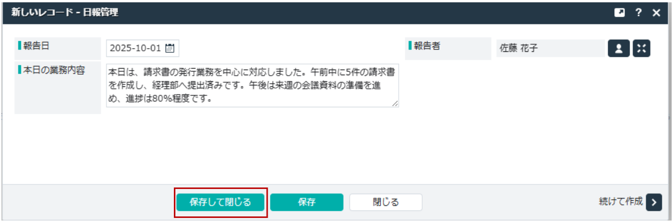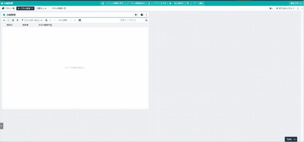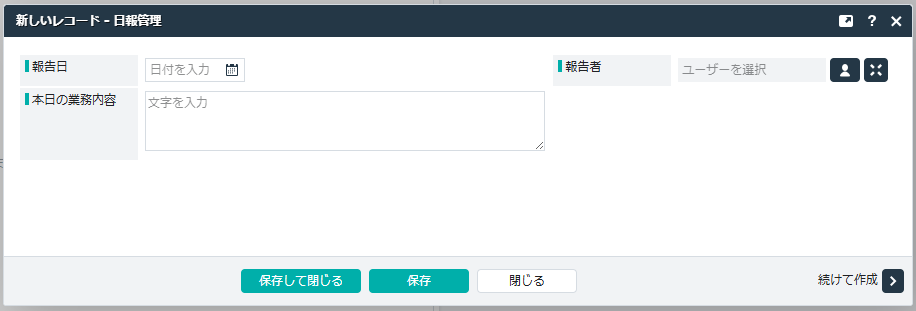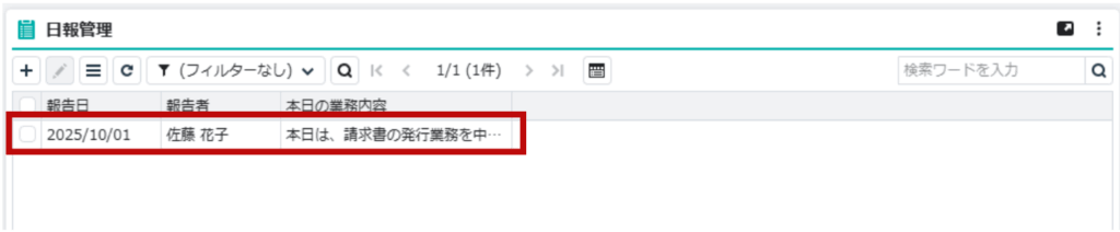 それでは、作成した「日報管理」パネルに日報を登録してみましょう。