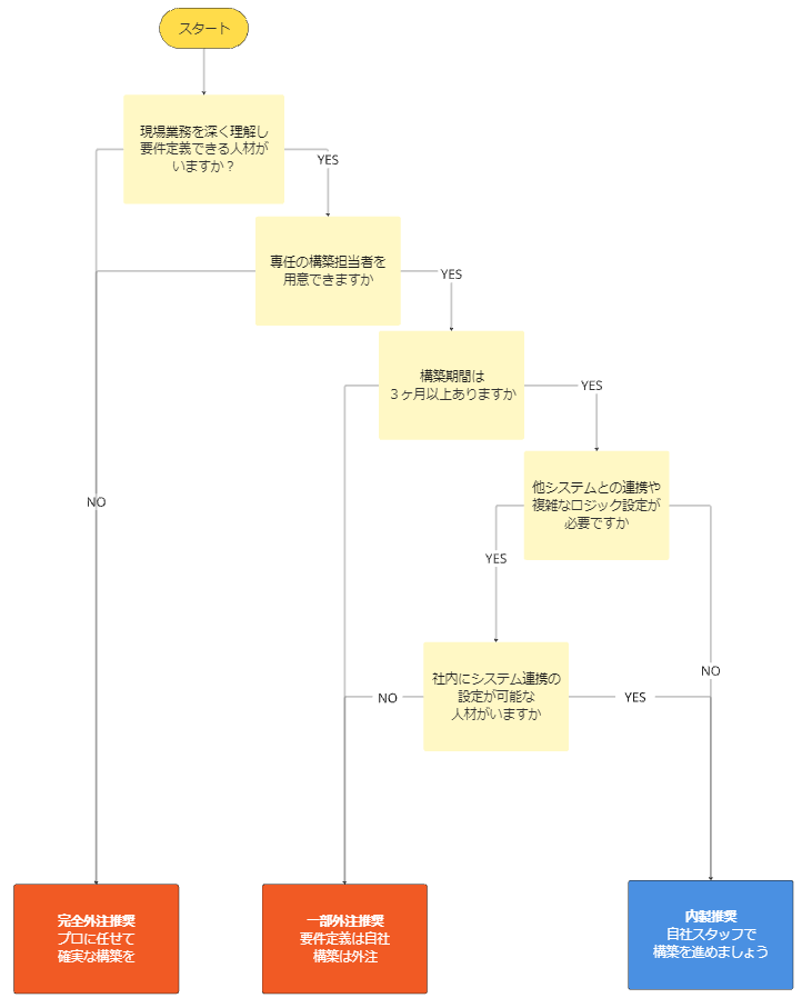 以下のフローチャートで、貴社のJUST.DB構築の適した進め方を判定してみましょう。