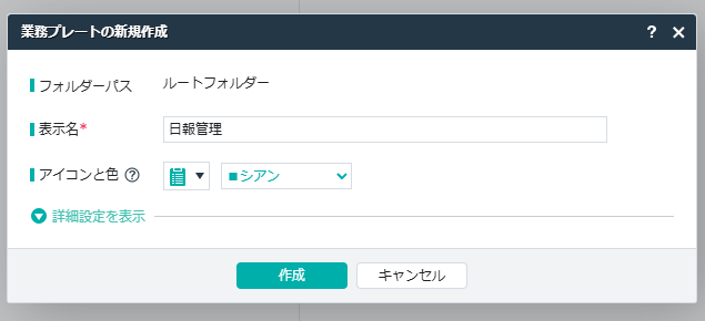 ②業務プレートの設定画面が開くので、業務プレートの名前やアイコン・色を設定しましょう。