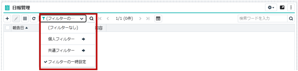 ⑤登録した日報は、フィルターで報告者や報告日を絞りこんで表示できます。