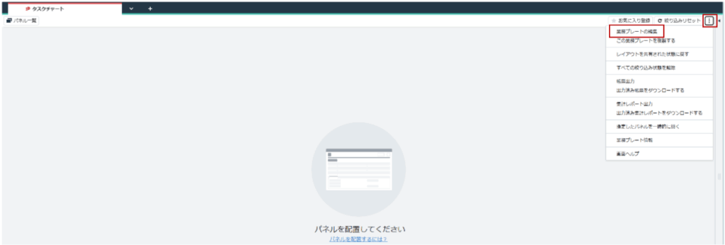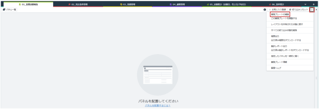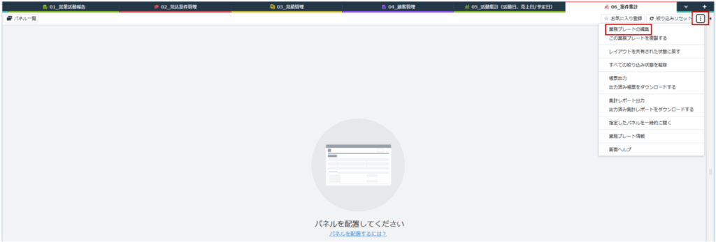 ①「・・・」ボタンをクリックし、「業務プレートの編集」を選択します。業務プレートが通常利用モードから編集モードに切り替わります。