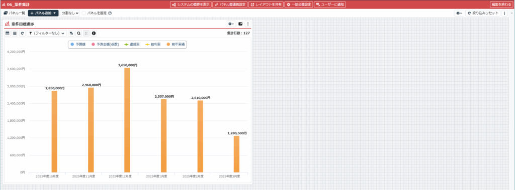 それでは、リアルタイム集計パネルを使って、案件目標進捗の集計パネルを作ってみましょう!