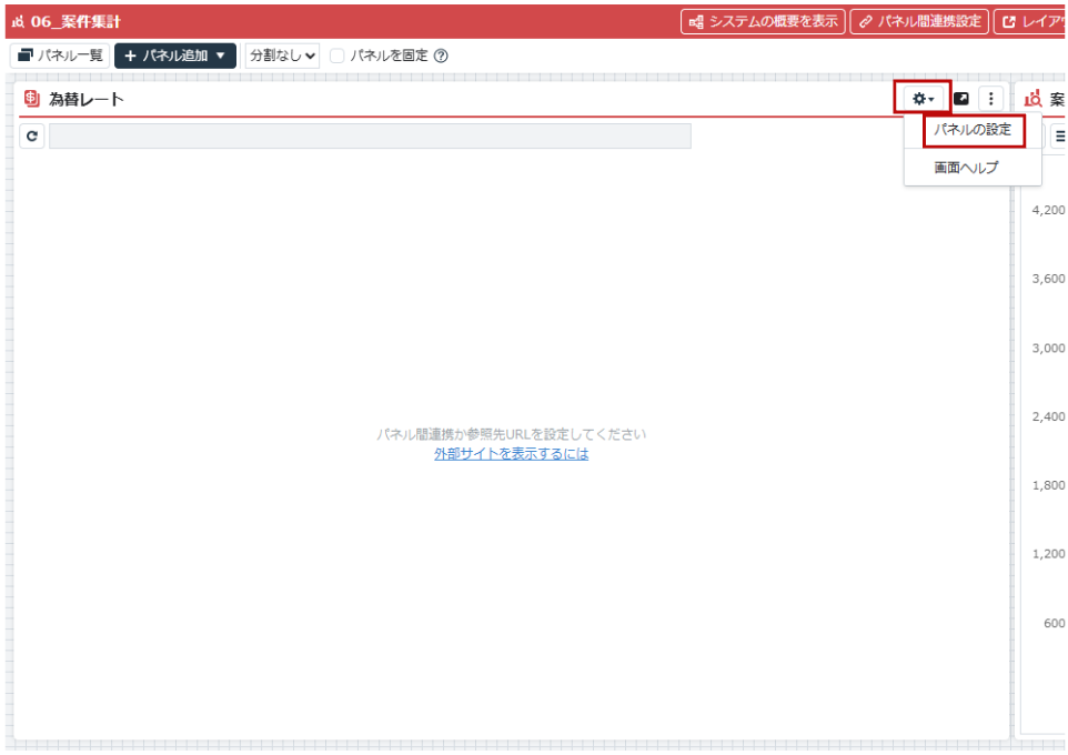 ④プレート上に作成したパネルが配置されました。「歯車」マークをクリックし、「パネルの設定」を選択しましょう。