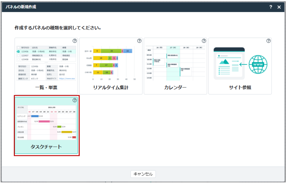 それでは、タスクチャートパネルを使って、プロジェクト管理パネルを作ってみましょう!
