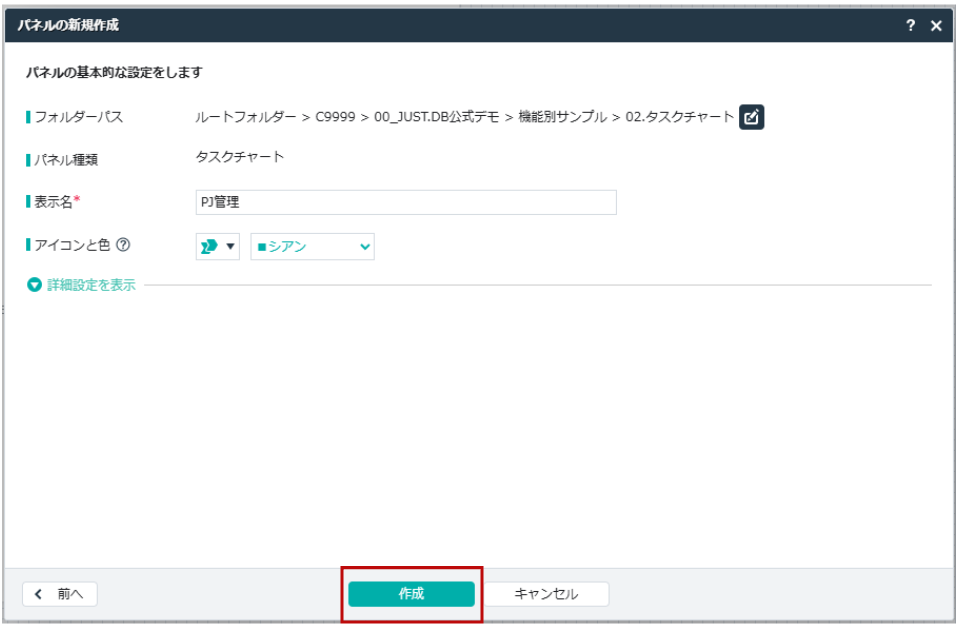 ③パネルの表示名を「PJ管理」とし、「作成」を押しましょう。