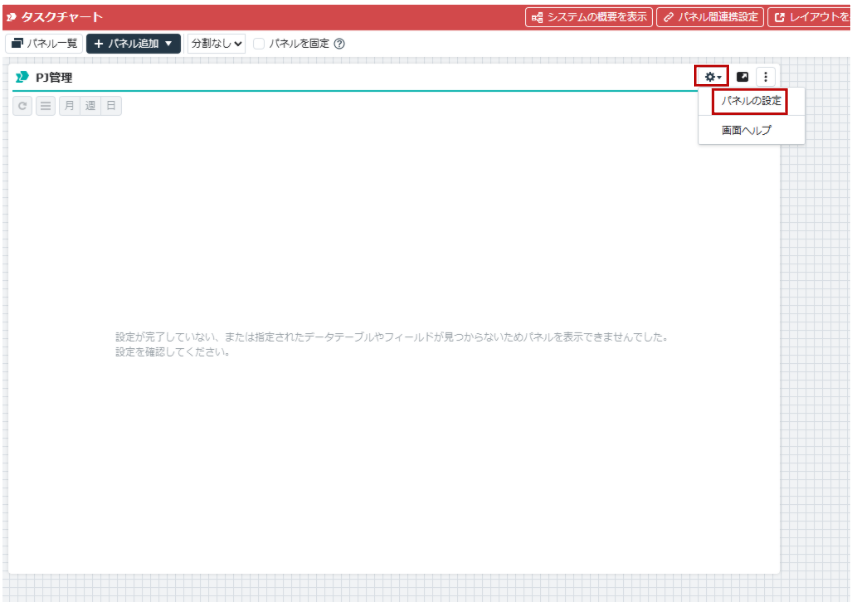 ⑥パネルにタスクチャートが表示されました。一覧・単票パネルとパネル間連携を設定しましょう。