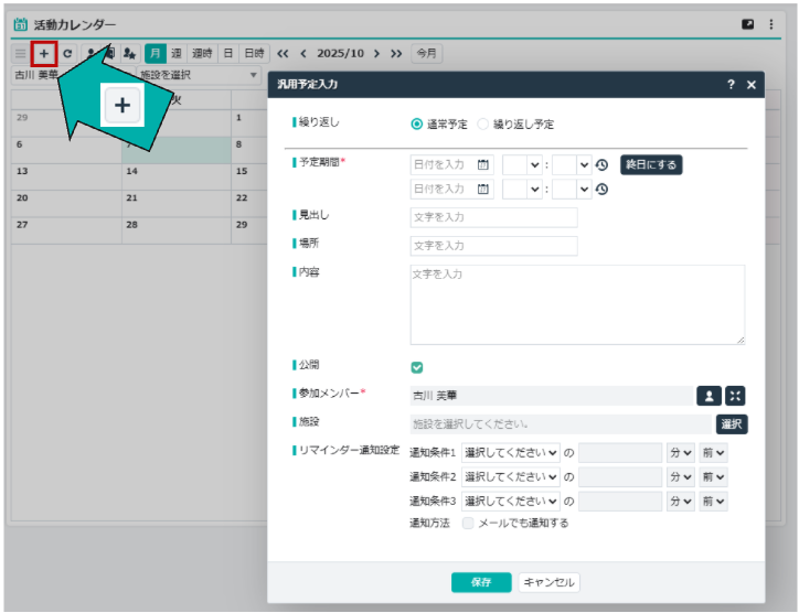 ⑤業務プレートの編集を終了し、「+」より作成したパネルに、予定を入力して管理することができます。