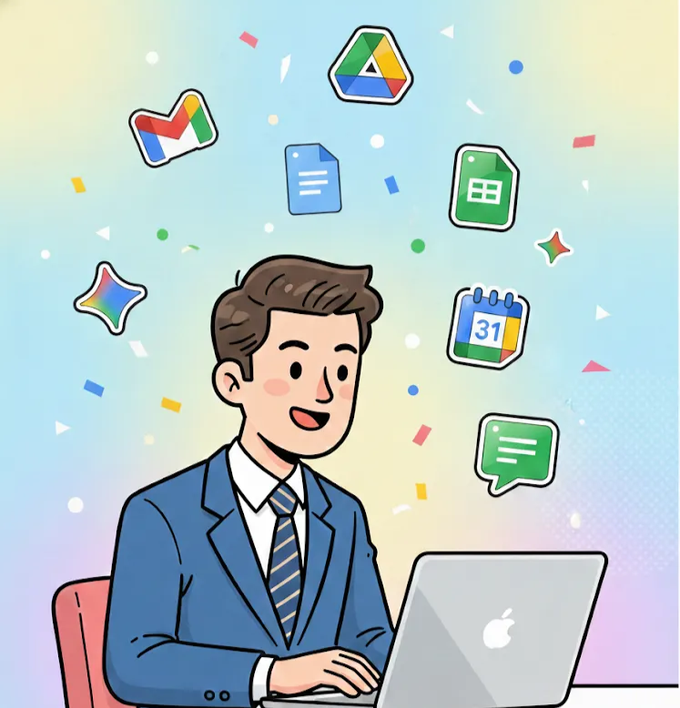 Google Workspaceを一言で表現するなら、「会社で使うメール・ファイル・会議・チャットなどを、すべてインターネット上で安全に管理できるサービス」です。