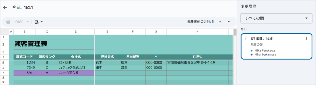 Google スプレッドシートなら同時編集が当たり前