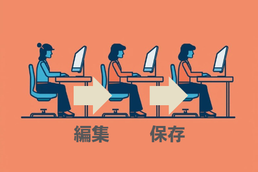 これまでは、1つの資料を作る際、「Aさんが作って保存し、Bさんが修正して保存し、またAさんが開いて修正する……」というやり取りが必要でした。これでは、相手の作業を待つ間が勿体ないです。