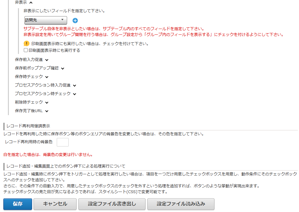 7.非表示タブをクリックし、「訪問先」「金額」を指定、保存ボタンを押す